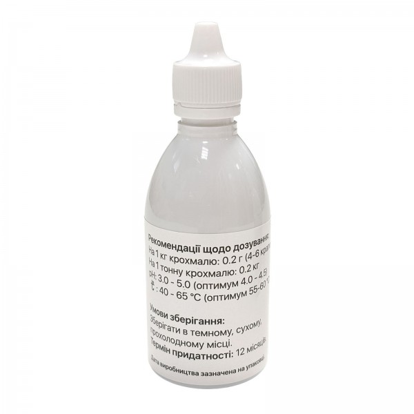 - Додати 0,2 мл (4–6 крапель) на 1 кг крохмалю або 0,1 мл (2–3 краплі) на 1 кг зерна.