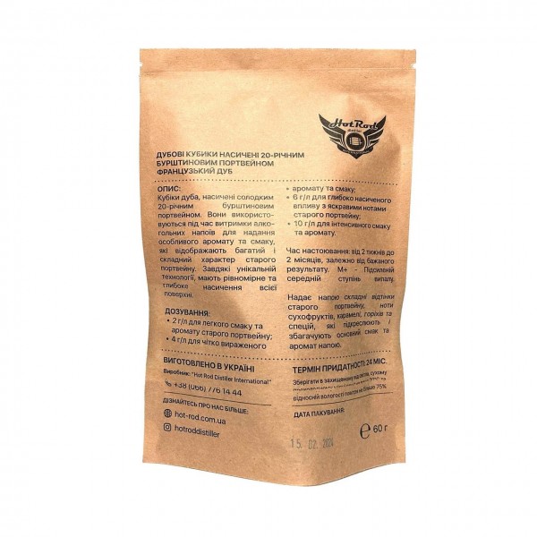 Кубики дубові Hot Rod M+ насичені Портвейном ідеально підходять для використання у процесі витримки віскі, рому, бренді, а також інших спиртних напоїв, до яких ви хочете додати унікальний характер.