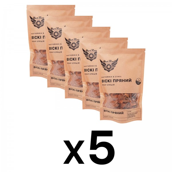 - Набір спецій Hot Rod для настойки «Віскі пряний» — гуртовий комплект 5 пакунків, кожен розрахований на 3 л готового продукту