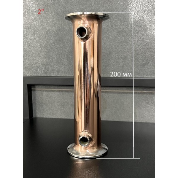 Дефлегматор имеет внутри 7 медных трубок диаметром 10мм и 3 перегородки.