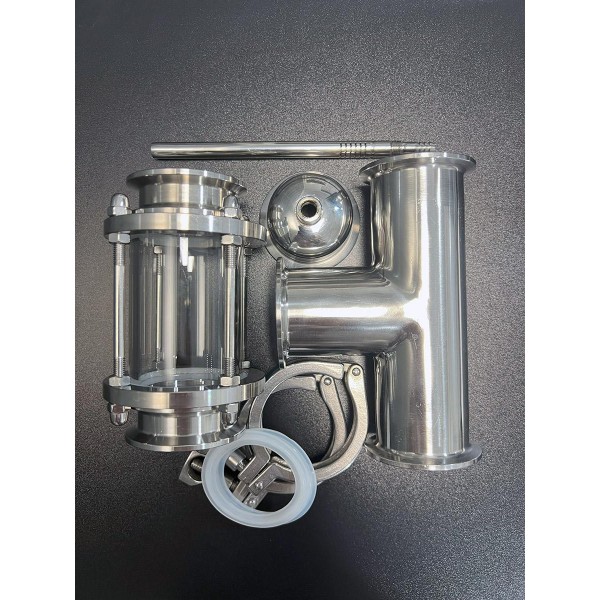 Вище сферичної заглушки за допомогою клампового з'єднання необхідно приєднати оглядовий діоптр, в який засипаються інгредієнти.
