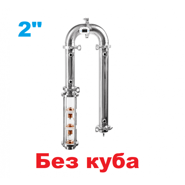 Висота дефлегматора 200 мм, 9 трубок по 10 мм, 3 перегородки. Потужність 2500 Вт.