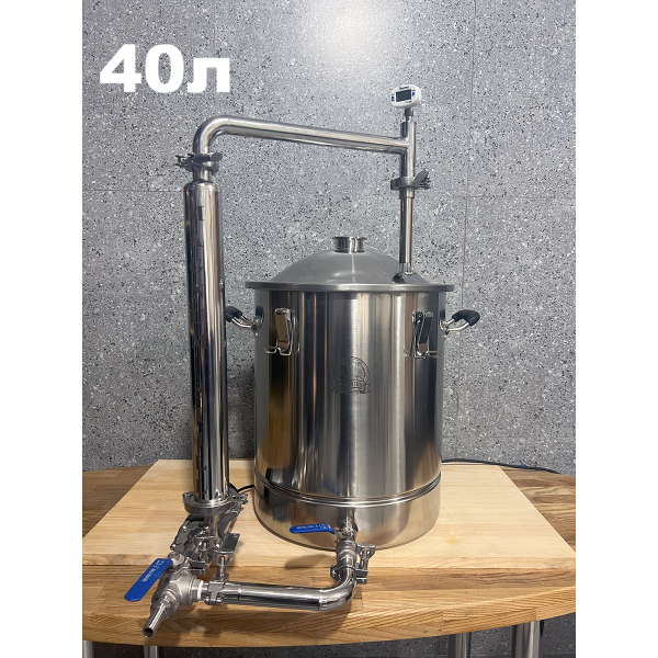 - Перегонный куб 40л с клампом под ТЭН, купольной крышкой и ниппелем под термометр