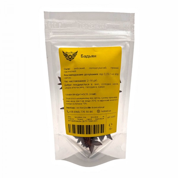 Бадьян - ароматная специя с выраженным анисовым профилем. Его часто используют в настойках и ликёрах, когда нужен сладковато-пряный аромат, который хорошо читается даже в малых дозах. Бадьян подходит для десертных купажей, пряных фруктовых рецептов и авторских смесей.