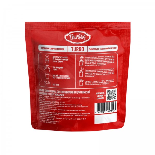 Турбо дрожжи Первак Turbo 360 г — специально разработанная комбинированная смесь для эффективного сбраживания сырья, содержащего сахар. Усиленная формула обеспечивает быстрое и стабильное брожение, чистый вкус без посторонних запахов и минимальное пенообразование.