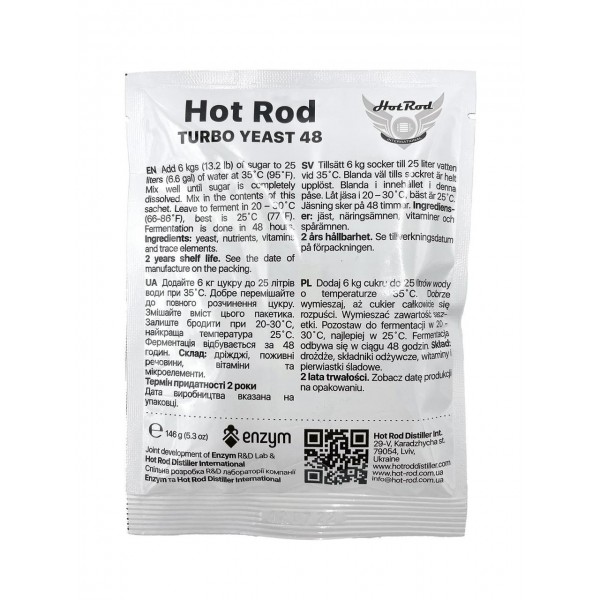 Hot Rod 48 — це перші професійні українські турбо дріжджі для швидкого приготування цукрової браги вдома або в умовах крафтового виробництва.