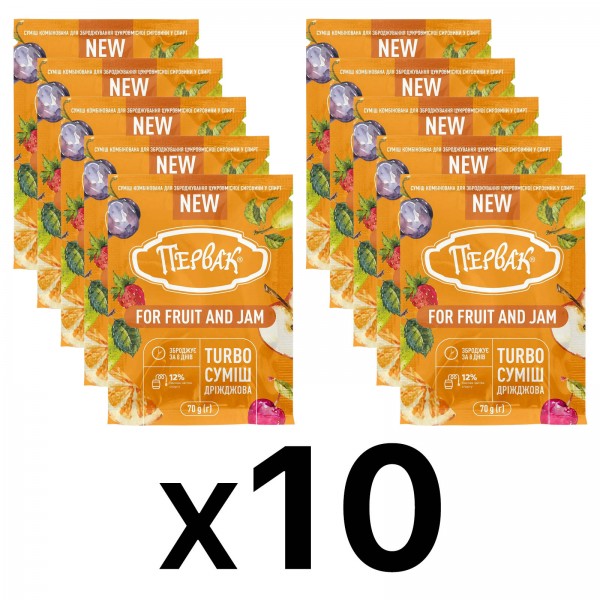 ПЕРВАК Turbo “For Fruit and Jam” — спеціалізовані спиртові турбо-дріжджі для зброджування фруктів, ягід та варення. Ідеально підходять для домашніх настоянок і дистилятів на основі яблук, слив, груш, вишень, ягідних міксів та залишків варення. Розроблено спільно з R&D лабораторією ПрАТ «Компанія Ензим».
